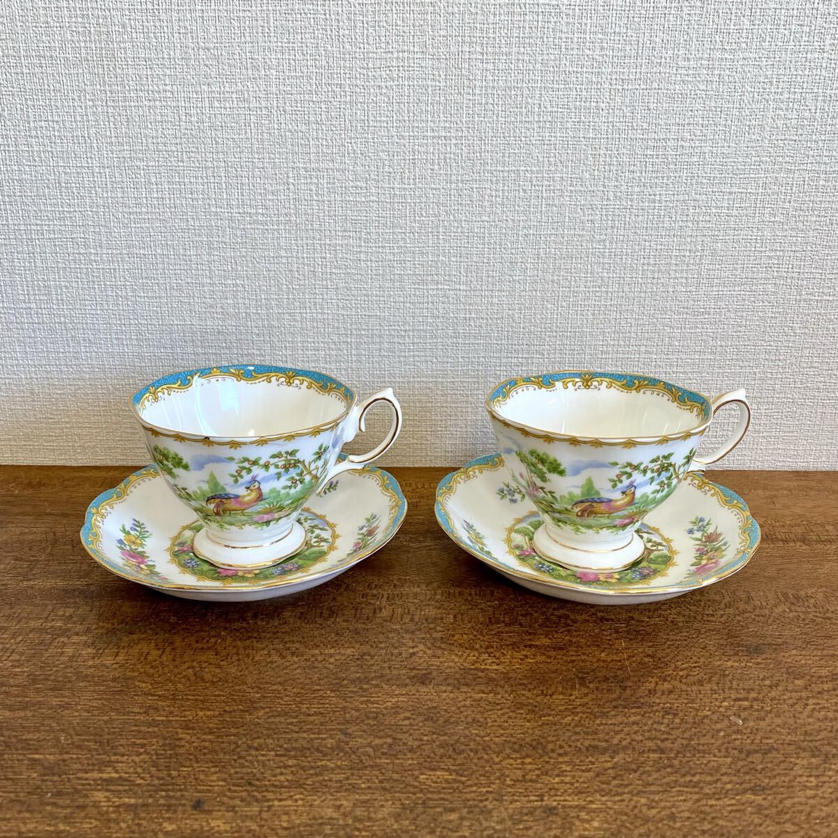 > ロイヤルアルバート チェルシーバード カップ&ソーサー 2客セット / ROYAL ALBERT イギリス 英国 洋食器 ペア 金彩 廃盤 / C