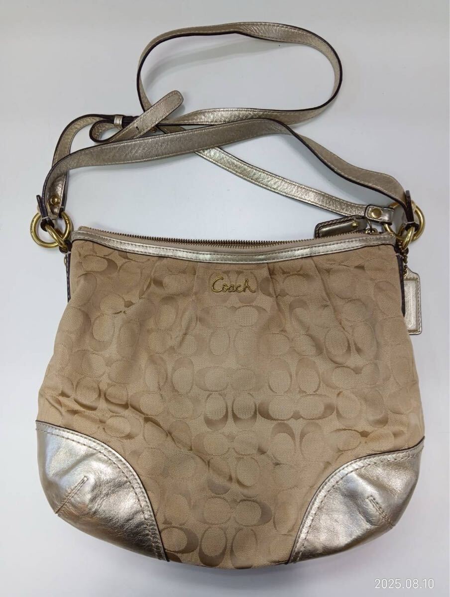 - 【中古品】COACHコーチ シグネチャー 2WAY ショルダーバッグ ハンドバッグ キャンバス×レザー 茶ブラウン×ゴールドF17400斜め掛け 手提げ