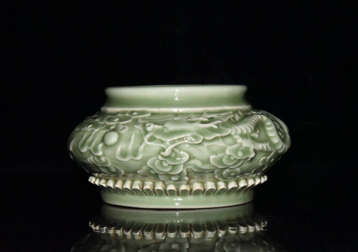 - 蔵友旧蔵出 清 乾隆年製款 豆青釉 神龍紋 筆洗 稀少珍品 貴重品 古陶瓷品 置物 古賞物 中国古玩 中国古美術品