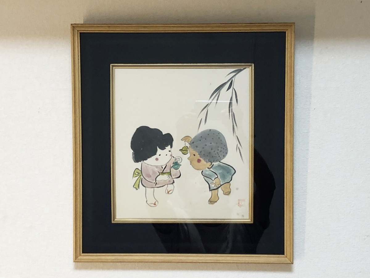 - 二人の童 色紙アート光子作 壁アート 和室・リビングルーム装飾 額付き日本画 「模写」美術品インテリア