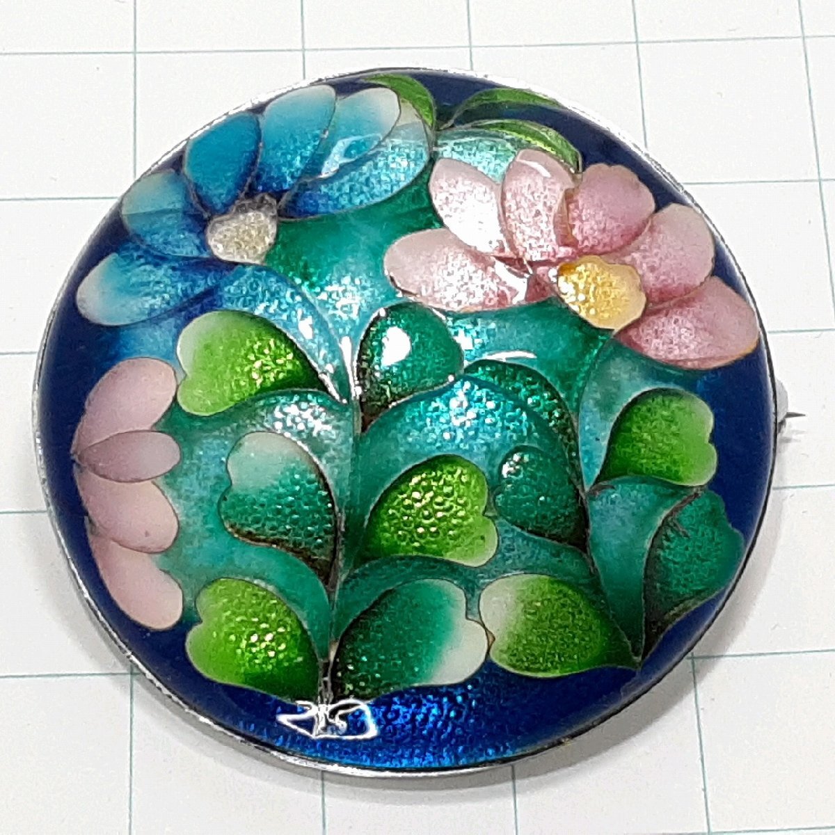 - 送料無料)ビンテージ☆七宝焼き フラワーデザイン☆アンティーク ブローチ A31391