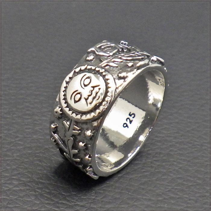 > [RING] 925 Vintage Silver Plated 太陽 と 月 サン & ムーン 葉っぱ デザイン ヴィンテージ スタイル 9mm リング 22号