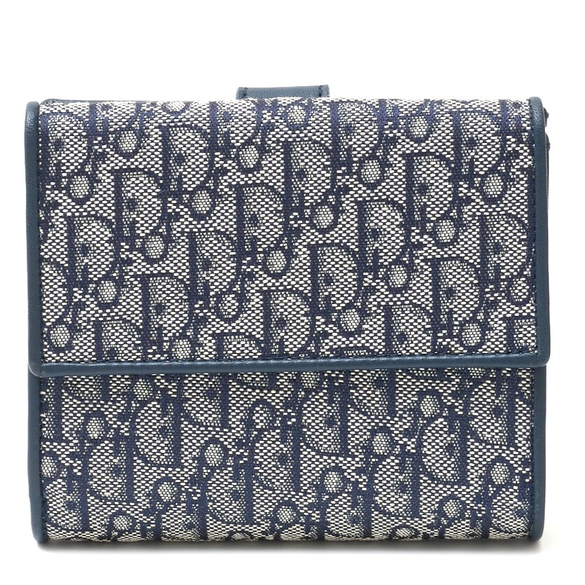 - CHRISTIAN DIOR クリスチャンディオール トロッター 二つ折り財布 ミニ コンパクト ウォレット レザー ネイビー×シルバー レディース