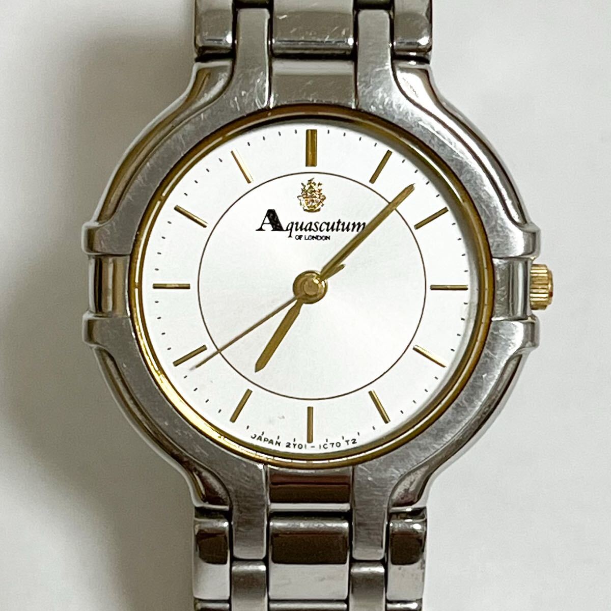 > 和822★ Aquascutum 2Y01-0B10 083587 アクアスキュータム クォーツ 腕時計 ウォッチ 3針 シルバー メタルバンド レディース