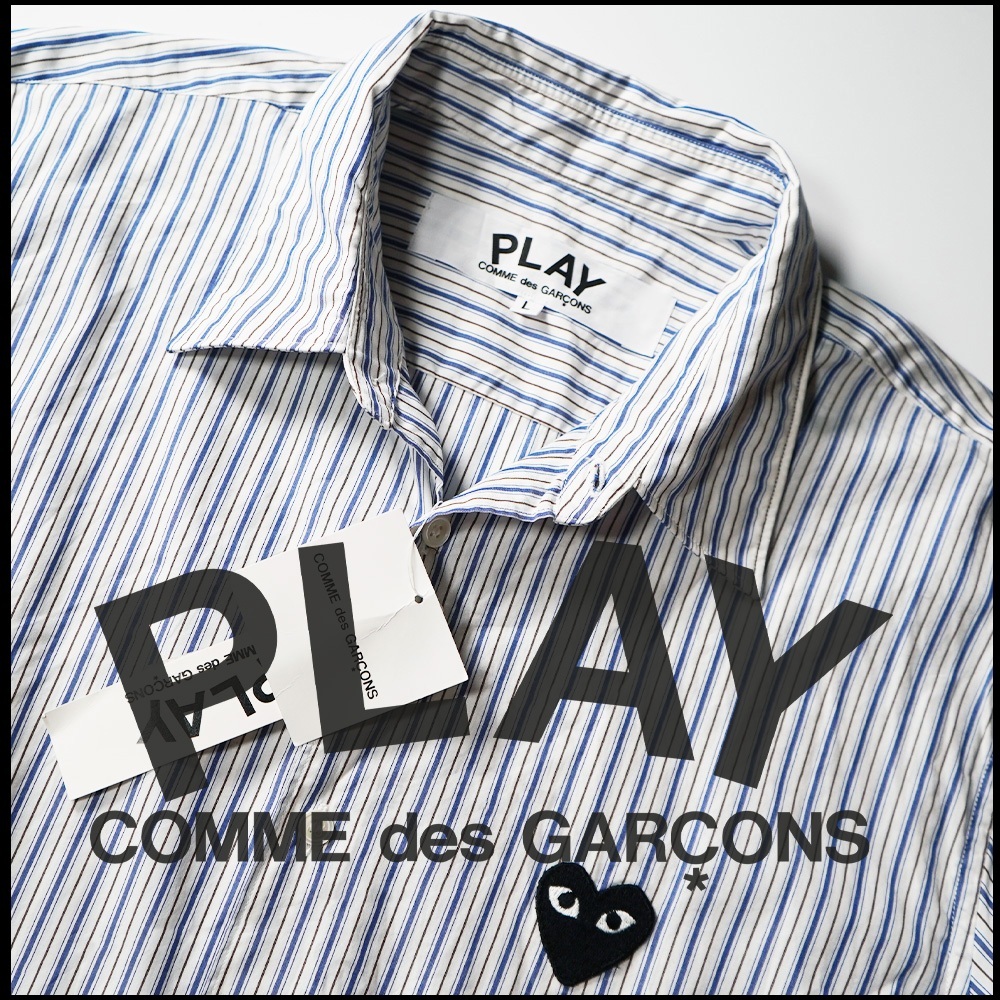 - 2013年製/新品【プレイコムデギャルソン PLAY COMME des GARCONS 】貴重なデッドストック品/ハートロゴワッペン/ストライプ シャツS