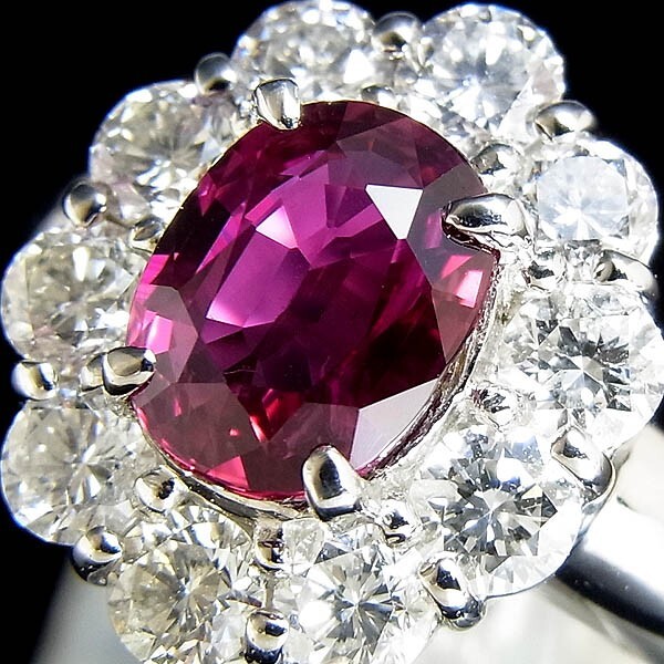 - Pt900 ルビー指輪R1.544ct D 1.36ct 9.3g 12号