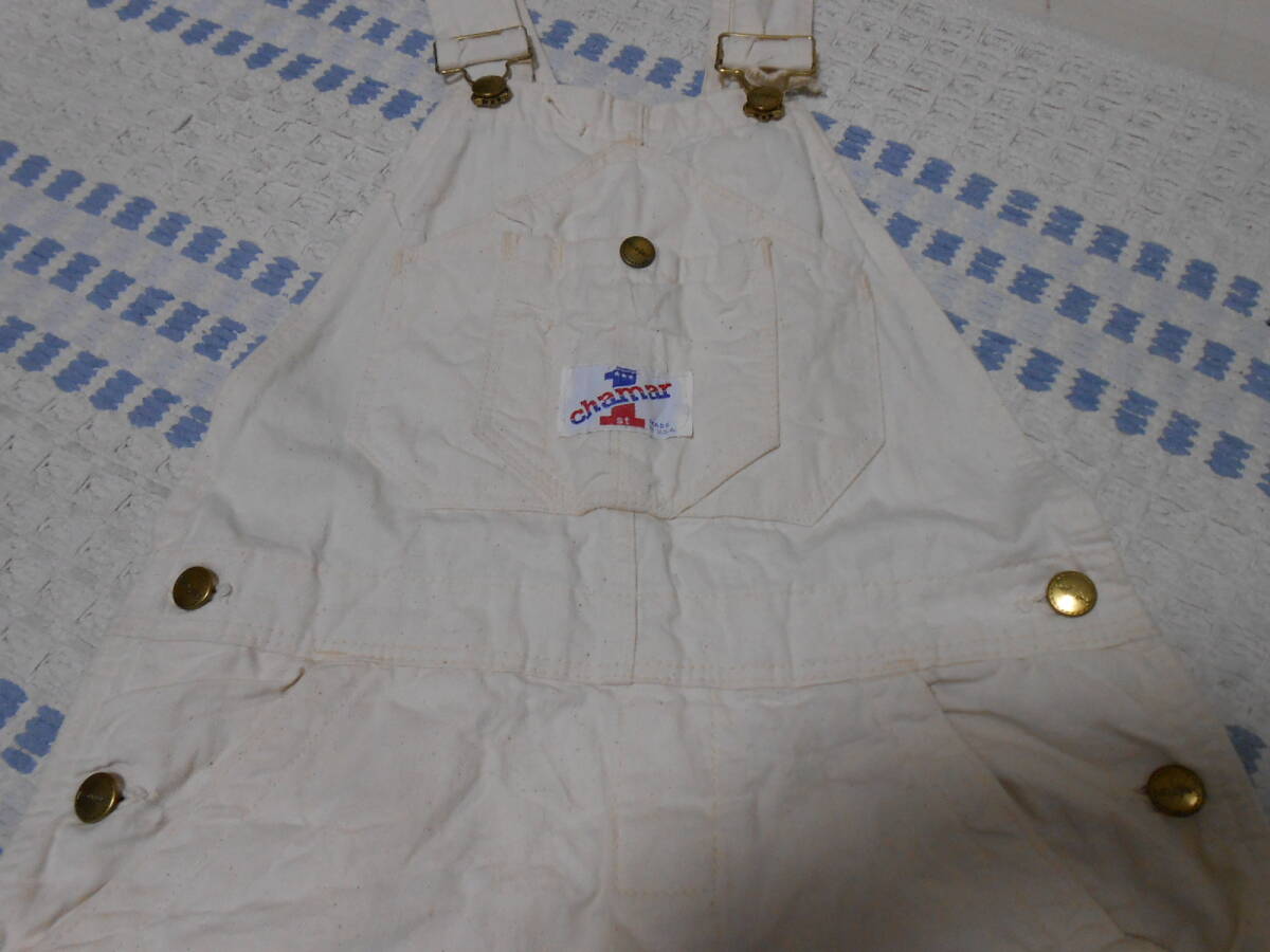 > USA製!chamar 1 オーバーオール 生成り ホワイト 70年代 Sanforizedボタン アメリカ製 ビンテージ Lee マイナーブランド