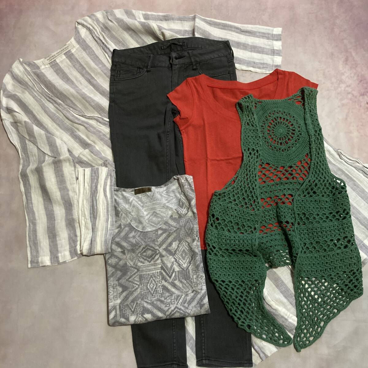 > まとめ売り ☆ goa ☆ リネンストライプガウン & Tシャツ & スキニーパンツ / セット / ニットジレ / トップス / ゴア / レディース