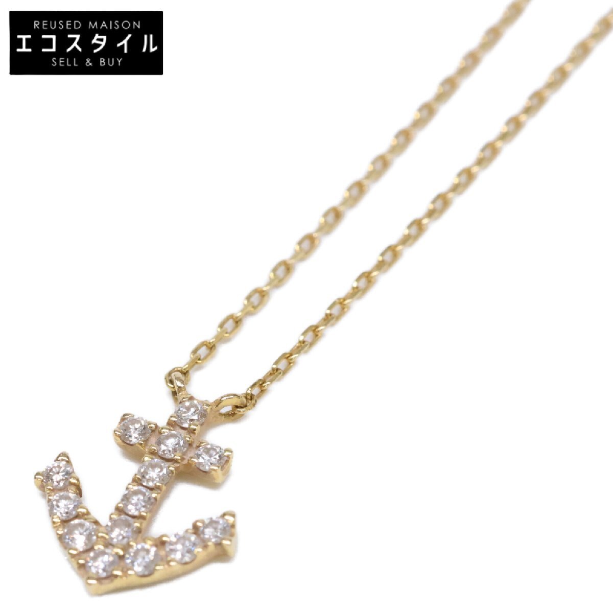 > 美品 STAR JEWELRY スタージュエリー 2ZN1894 K18 0.07 DIA Anchor N アンカー ダイヤモンド ネックレス イエローゴールド レディース