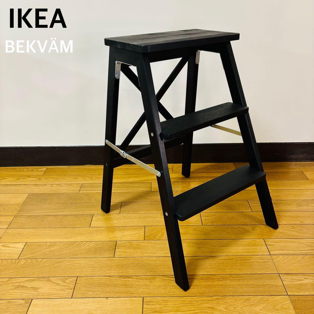 - 【美品】 IKEA BEKVAM 木製脚立 3段 花台 踏み台 BEKVM