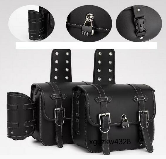 > サイドバッグ 左右2個セット バイク用シートバッグ PU 南京錠付き 防水 鍵 ケース 小物入れ ツーリング 33*25*13cm 黒/XS378