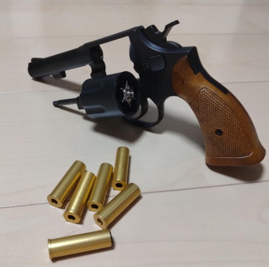 - ガスガン リボルバー サバゲー ライブカート式 ブラック×フェイクウッド リアルなアクション 6mmBB弾対応 18歳以上 耐久性