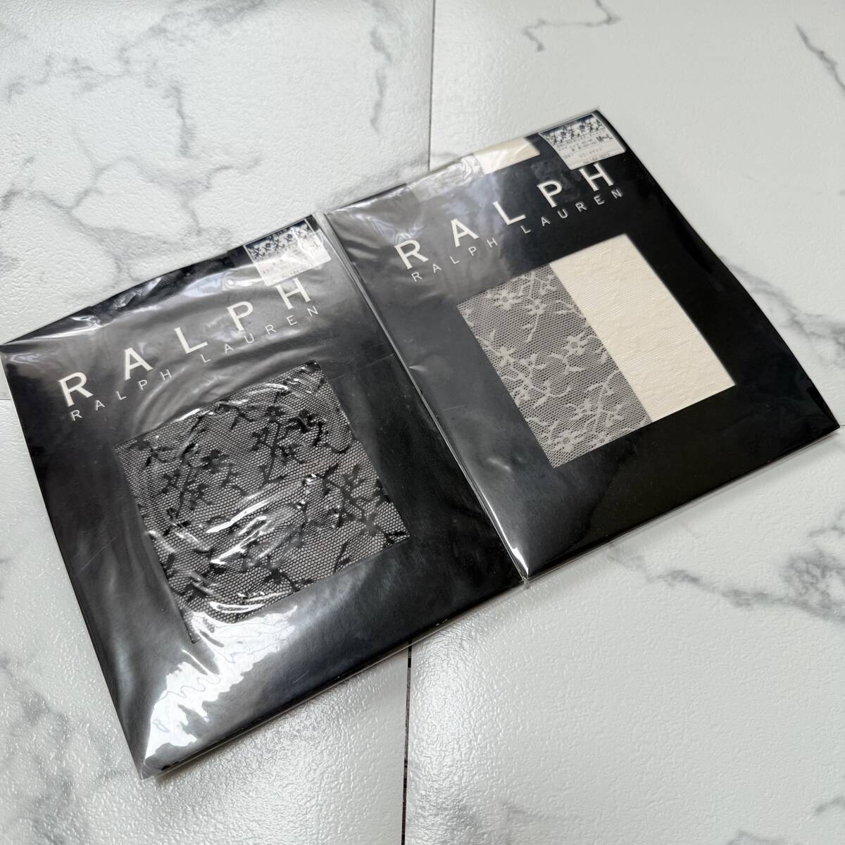 > ★ RALPH LAUREN ラルフローレン つるバラ つる薔薇 ヌードトゥ ストッキング M~L ブラック ホワイト 2足セット 未使用 ★