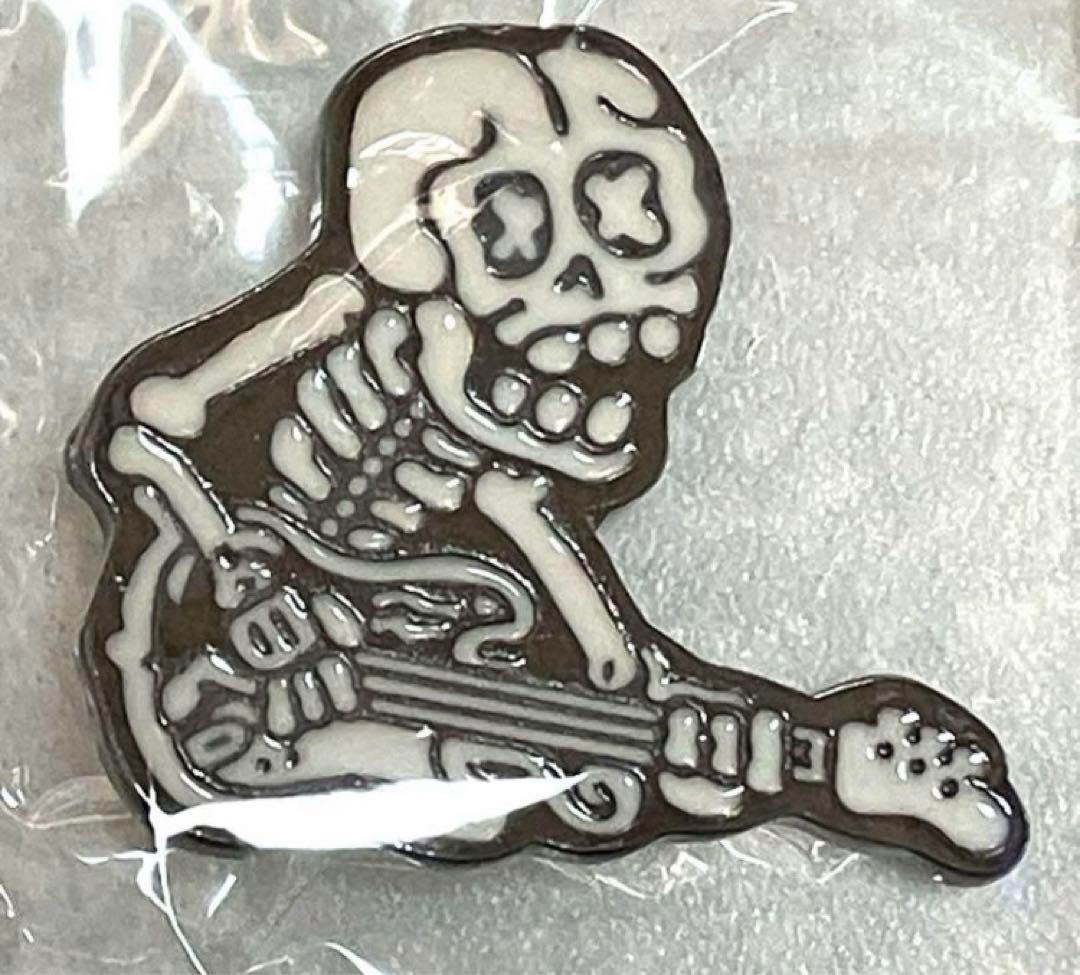 - 新品 送無★☆ピンバッジ ギター スケルトン☆★カワイイ オシャレ パンク ロック スカル 骸骨 ベース 楽器 ピンバッヂ アクセサリー
