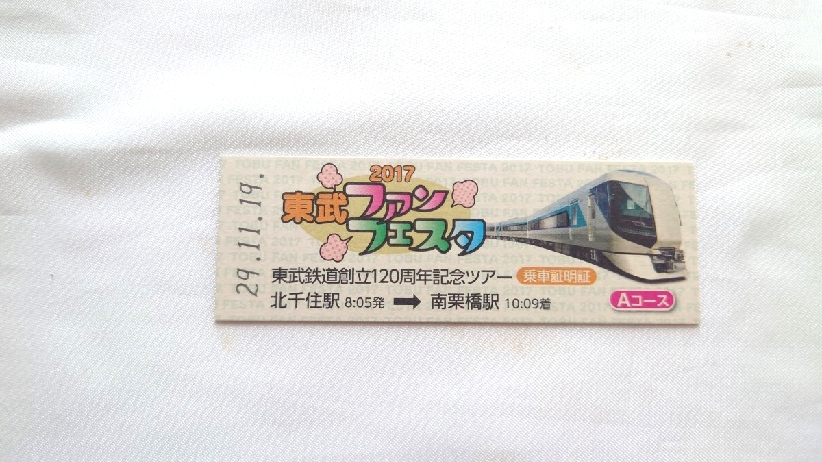- ★東武鉄道★2017東武ファンフェスタ 東武鉄道創立120周年記念ツアー乗車証明証★D型硬券