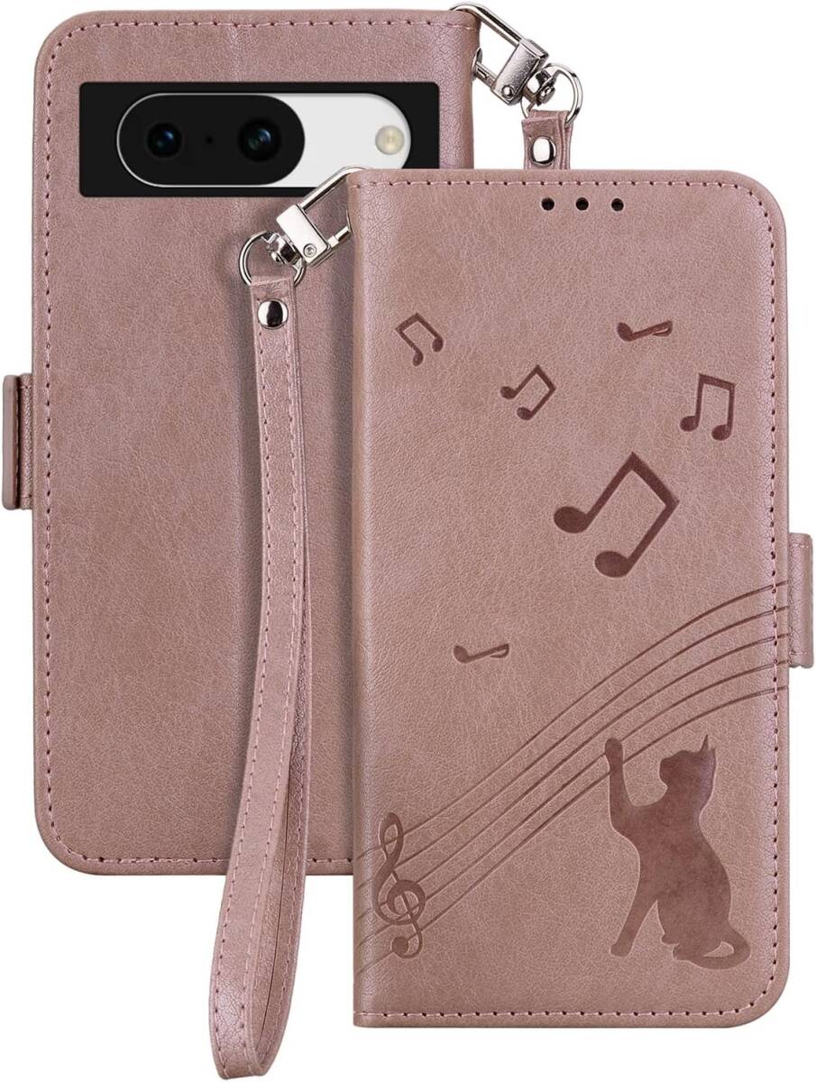 > google pixel 8 ケース スタンド機能 手帳型 マグネット カード収納 全面保護 スマホケース 猫柄 柔らかいTPU TOO&SOO (ローズパウダー)