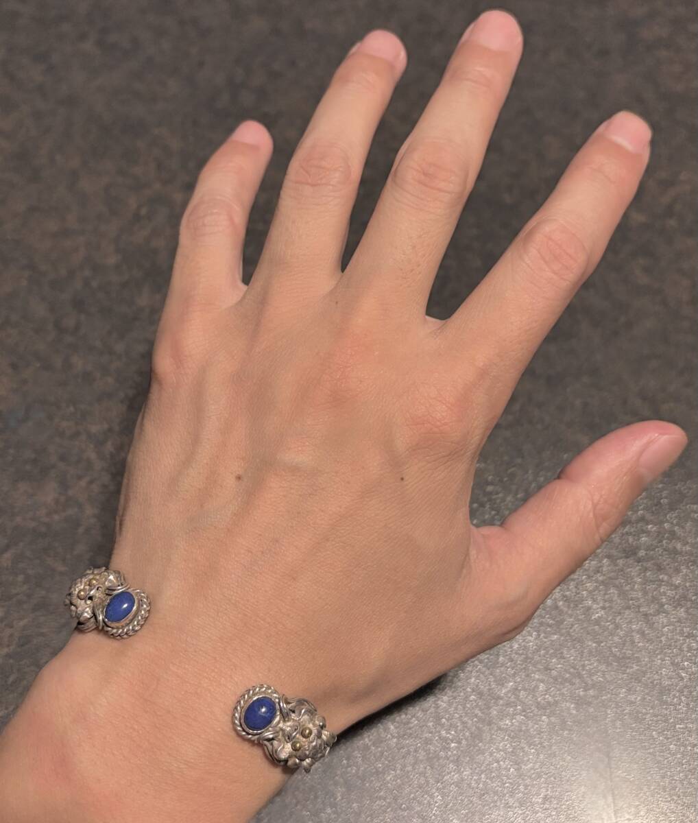 - 2希少アンティーク銀シルバー製バングルS~Mドラゴン龍/竜モチーフ頭ラピス青ラズリ石デッドストック年代ビンテージ物ユニセックス男女兼用