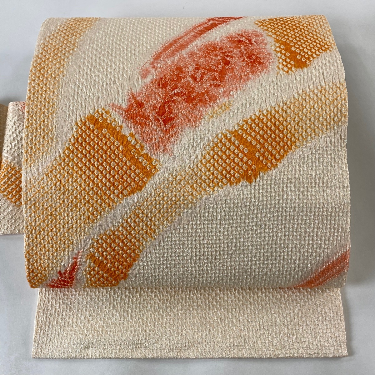 - 名古屋帯 美品 秀品 幾何学 絞り サーモンピンク 正絹 【中古】