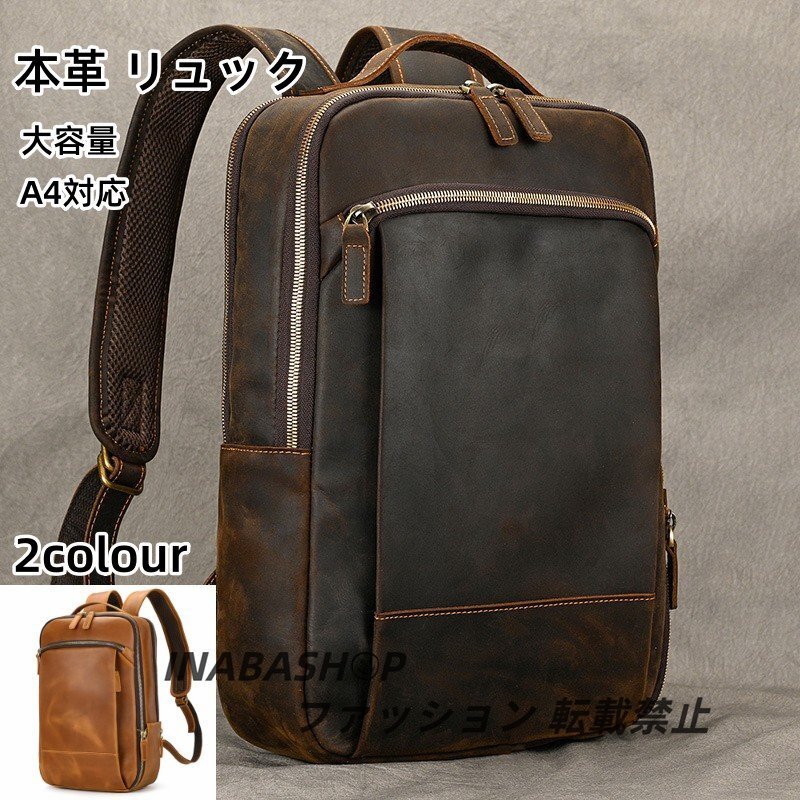 - 大容量 リュック メンズ レザー サック メンズ 本革 A4対応 15インチPC バックパック 本革 防水 男性 ビジネス通勤 通学 出張 旅行 通気性