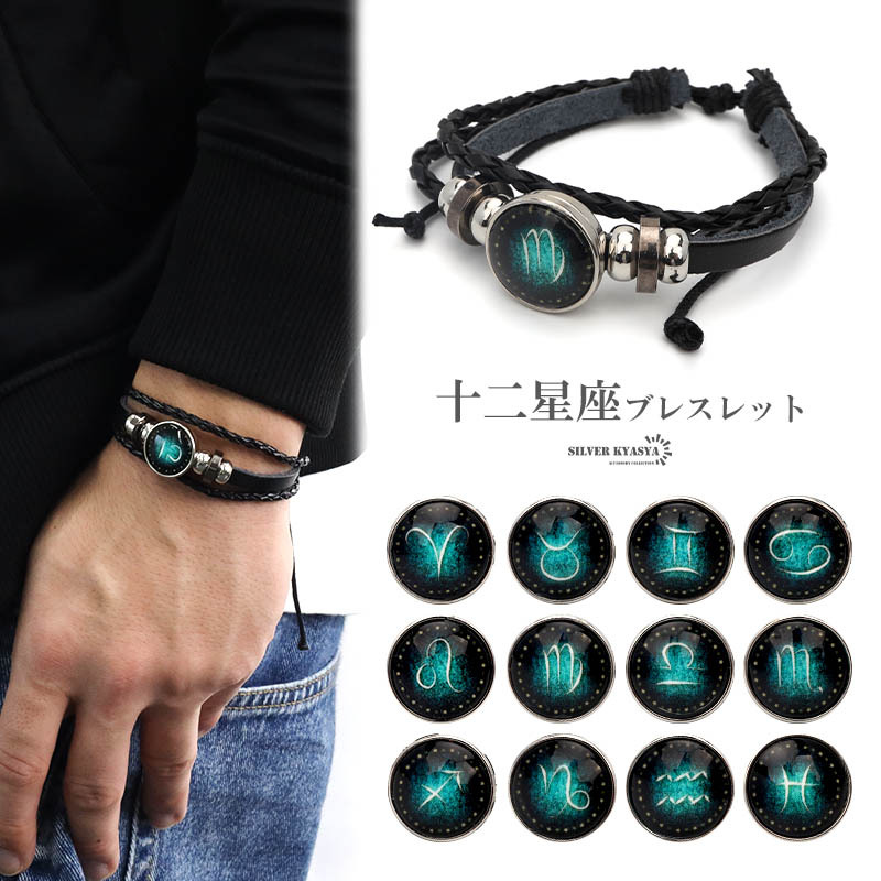 - (H-さそり座) 12星座ブレスレット 星座サイン 本革 レザーブレスレット メンズ 星座 誕生日 ブレスレット