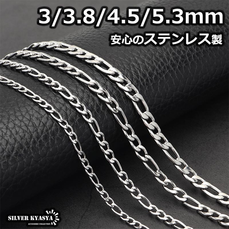 - (3.8mm、45cm) ステンレス フィガロチェーンネックレス シルバー 喜平チェーン ネックレス 細め チェーン 太め
