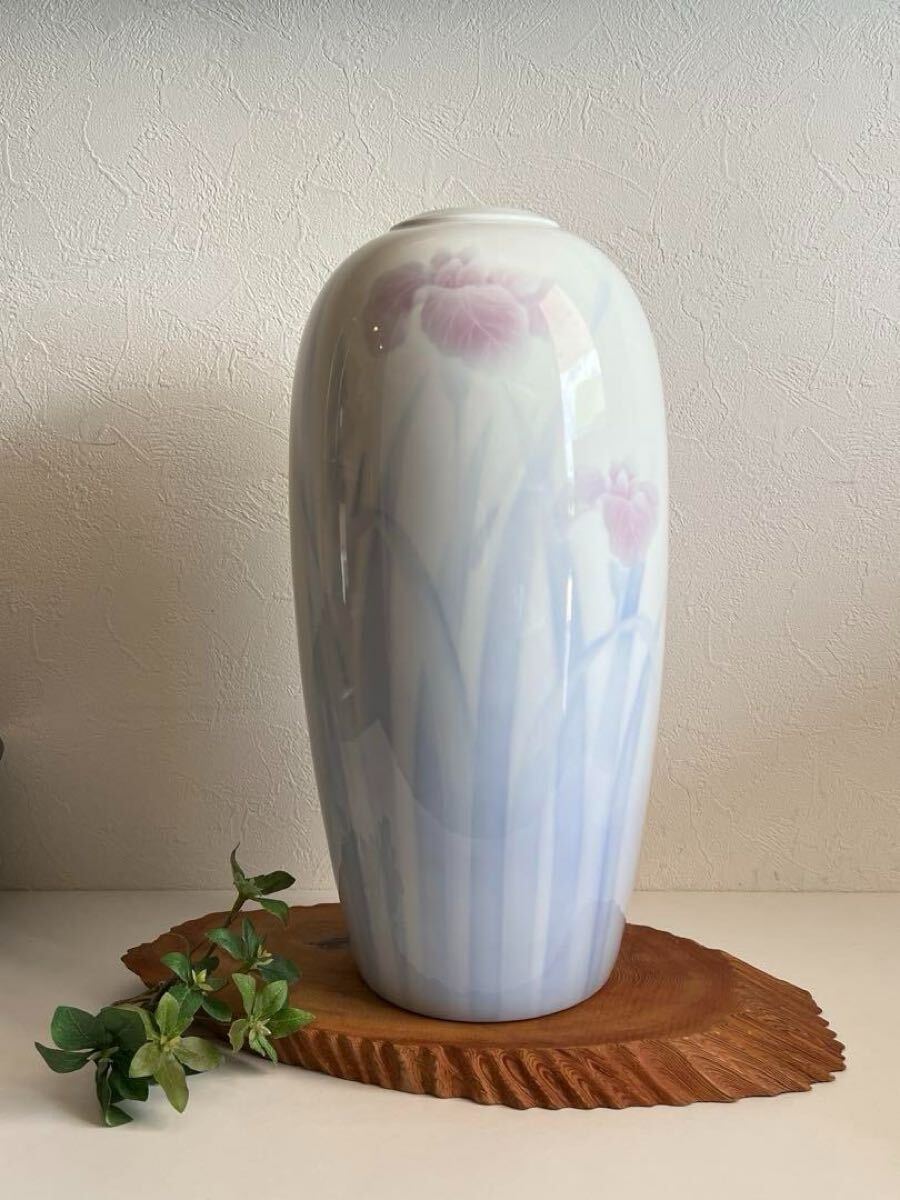 > wasabi k781 宮内庁御用達 深川製磁 色絵菖蒲文花瓶 花器 花入 ショウブ アヤメ 陶器製 和のインテリア 淡い色合いが素敵な凛とした逸品