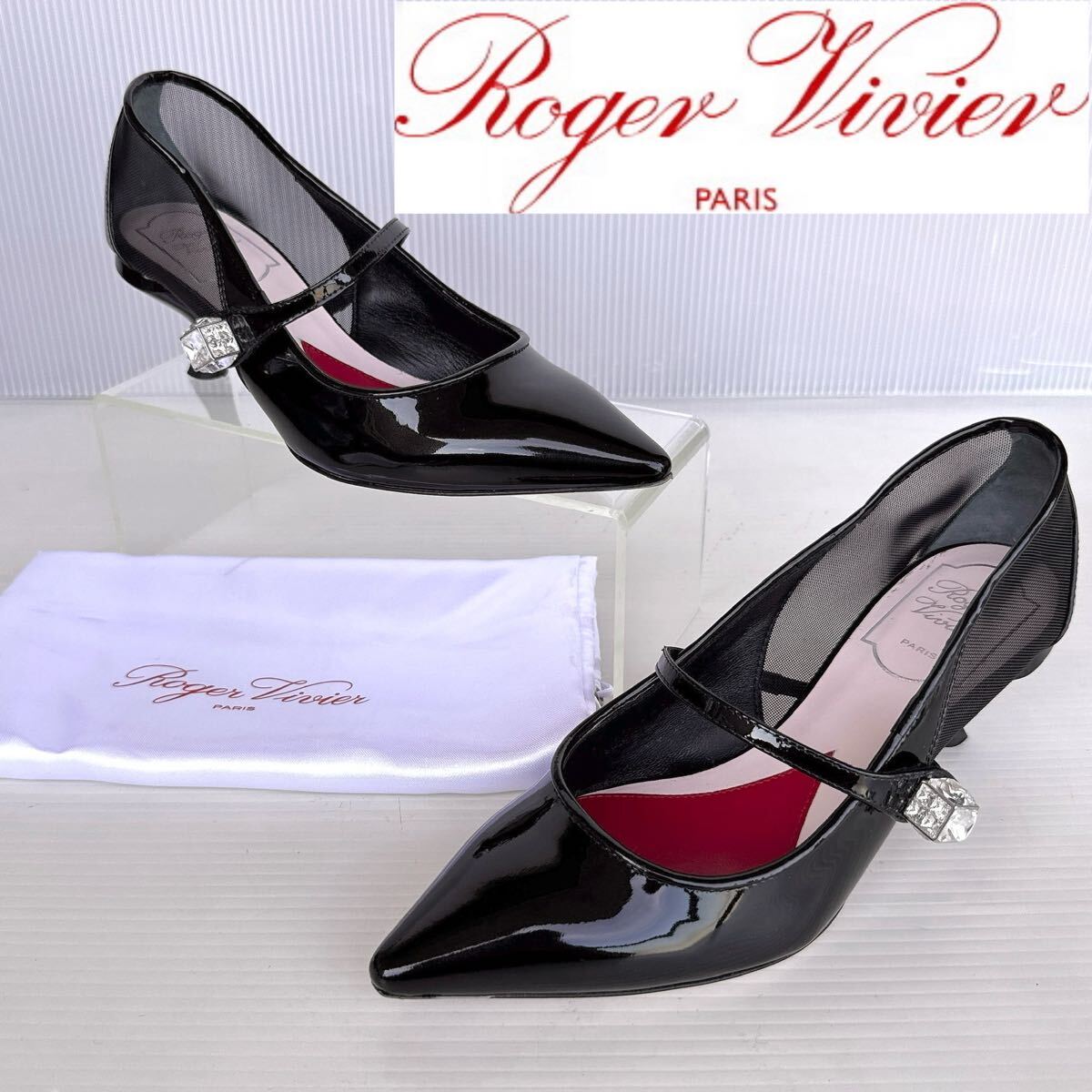 - Roger Vivier ロジェヴィヴィエ フラットシューズ パンプス クリスタル ビジュー 極美品 36 ミュール ベルト付き レーディス シューズ 靴