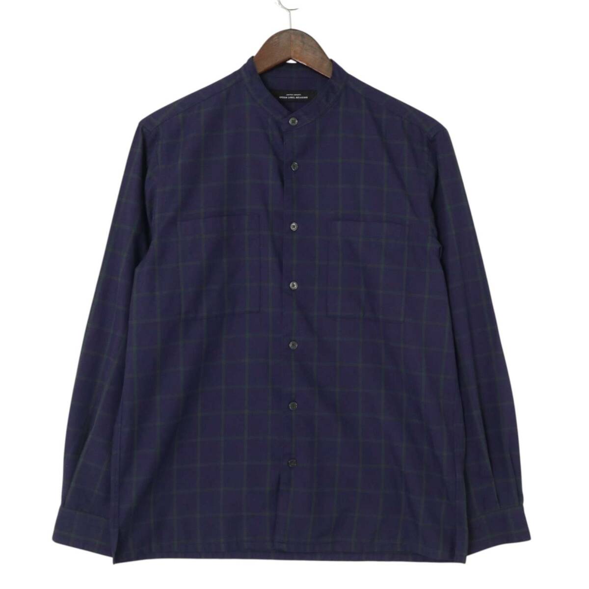> green label relaxing ユナイテッドアローズ チェック★ ウィンドウペン 長袖 バンドカラー シャツ Sz.S メンズ ネイビー