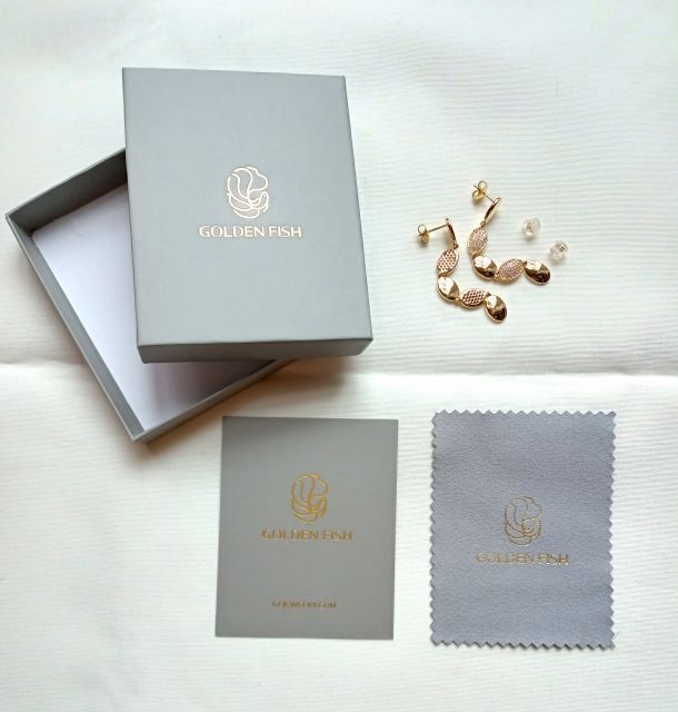 - 未使用 ドロップイヤリング ゴールデンフィッシュ イエローゴールドメッキ オーバルリンク パヴェクリスタル付き