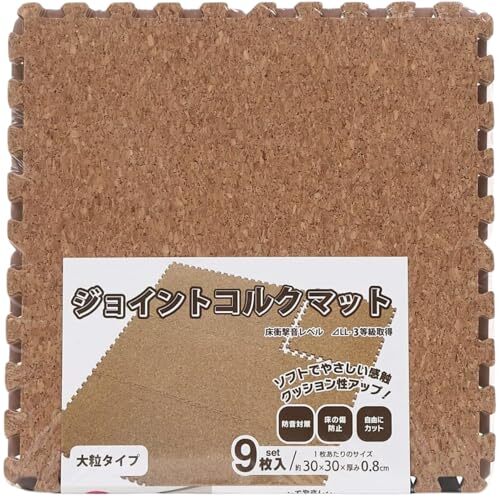> ユノックス 防音 ジョイントコルクマット 約30cm×30cm 9枚set 大粒 防音 衝撃吸収 床保護 キズ防止 断熱 床暖房対応 赤ちゃん