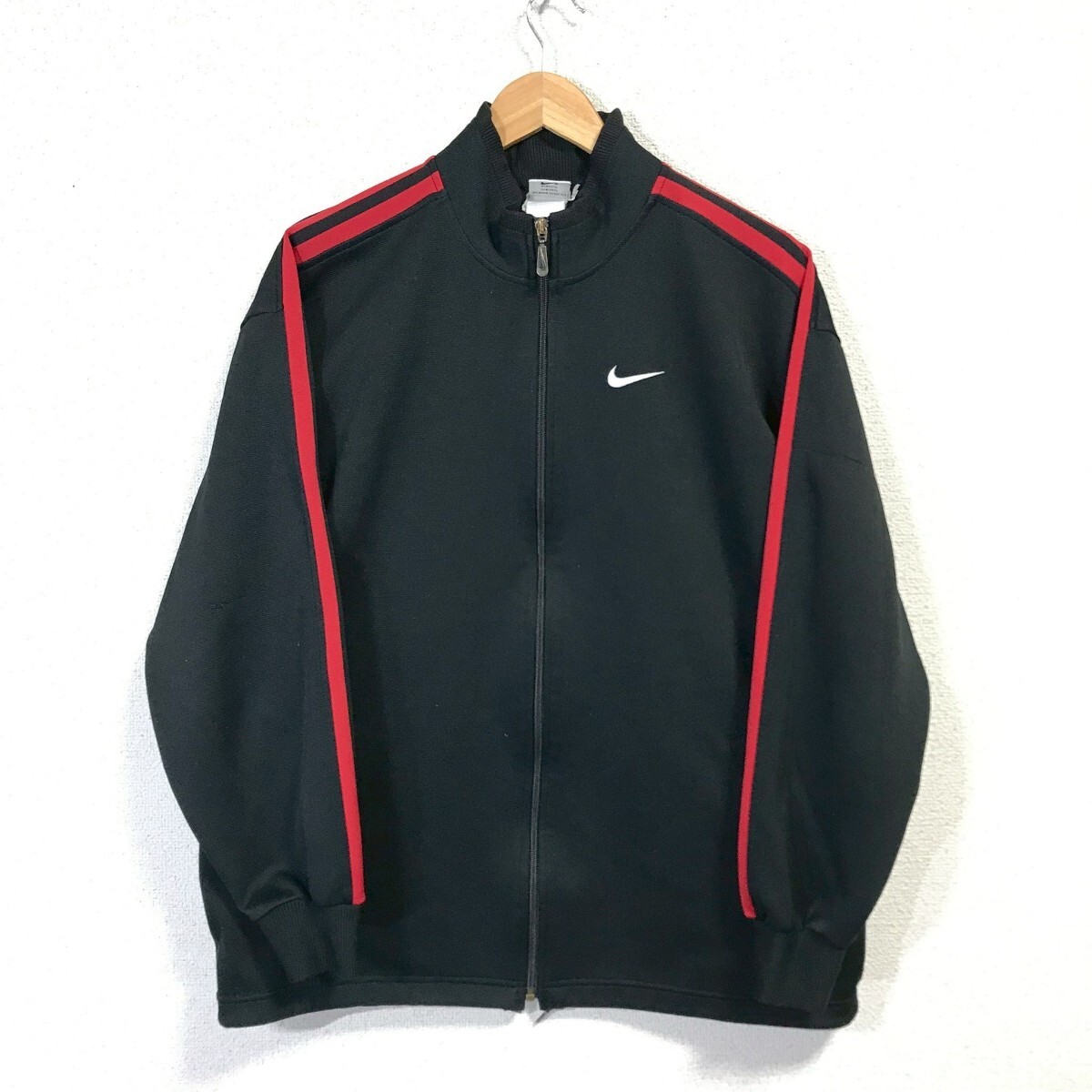 - Ye1622dL 日本製 NIKE ナイキ サイズL トラックジャケット ジャージ ロゴ刺繍 ブラック 黒 メンズ レトロナイキ スポーツ 古着