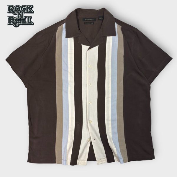 > ★50'Sスタイル★A[X]IST washable SILK 半袖オープンシャツ sizeL 切替し ロカビリー ロックンロール 古着 クリーニング プレス済み 809