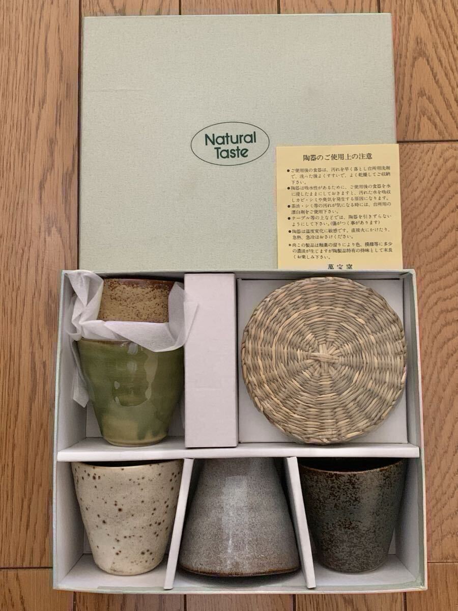 > TOHSAI 陶彩 マルチカップセット 茶托付き 萬宝窯 和食器 コースター 茶器 湯呑み 酒器 ナチュラルテイスト 新品未使用