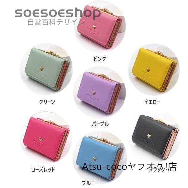 - 多機能短財布 レディース 可愛い ミニ財布 三つ折り 大容量 小銭入れ カード入れ PUレザー クラッチバッグ