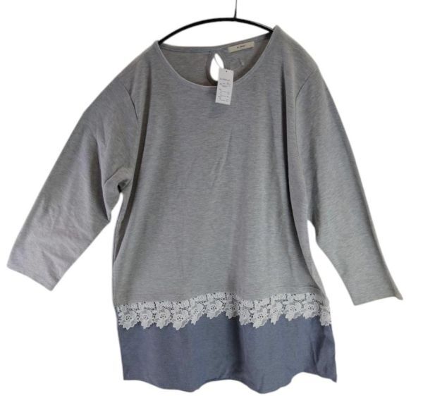 - SS2778◆ 新品 チュニック ドッキング 花柄レース シンプル 5Lサイズ 杢グレー 送料450円