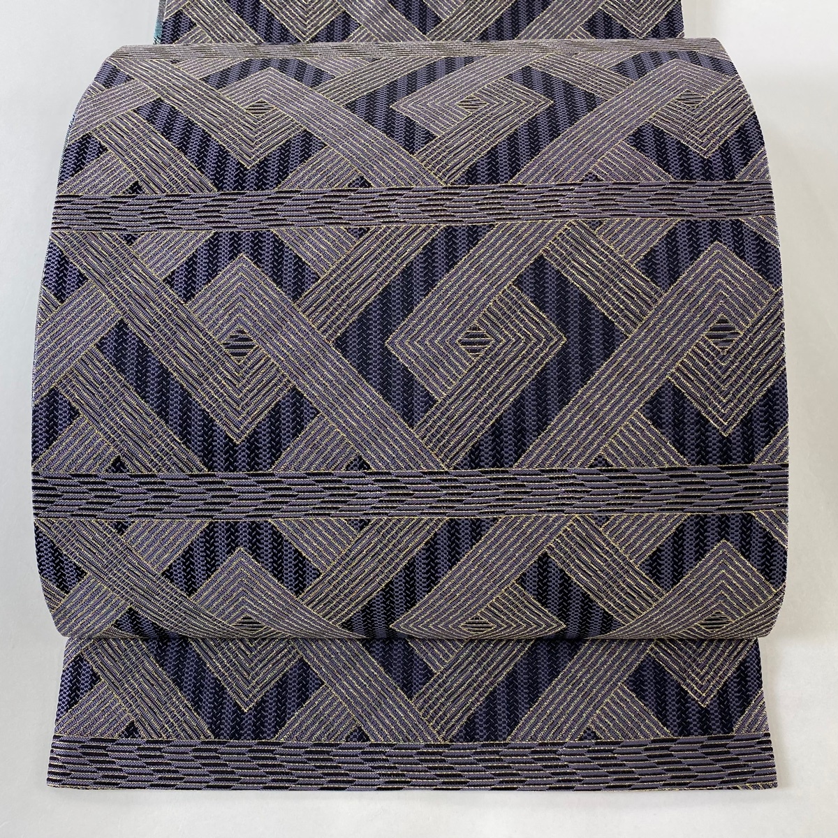 - 袋帯 美品 逸品 斉藤三才 落款 段縞 幾何学模様 金糸 紫 六通 正絹 【中古】
