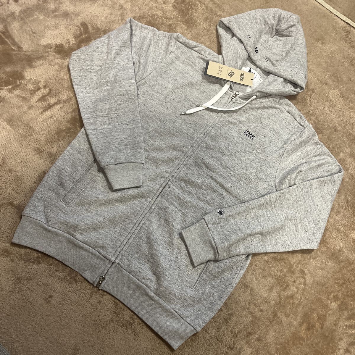> 新品正規品 パーリーゲイツ サイズ4 フード グレー 裏毛 フルジップフーディ シンプルESSENTIAL SERIES 送料無料 裏タオル地