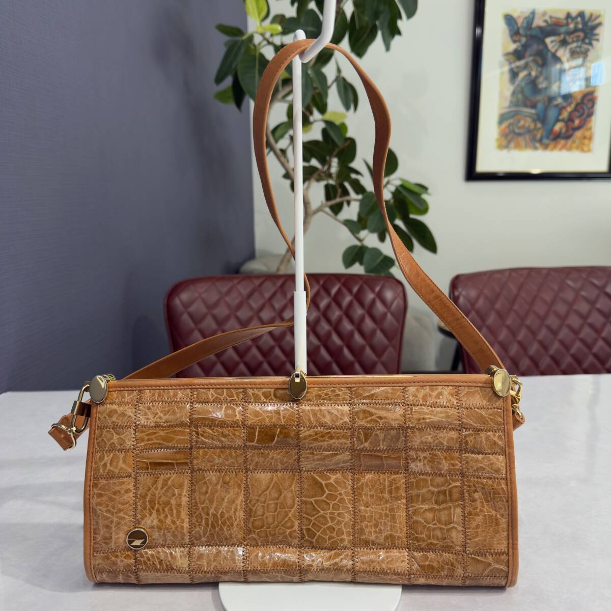 - ●H7-8-27 ヴィンテージ ゼニス イタリア ブラウン 本革 クロコダイル柄 クラッチバッグ ショルダーバッグ 中古