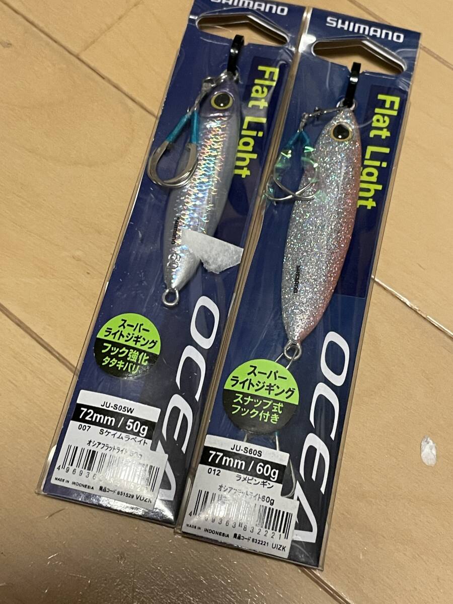 > シマノ▲オシア フラットライト▲50g ケイムラベイト&60g ラメピンギン▲SLJ イサキ マダイ ヒラメ マゴチ 青物に▲定価総額2750円
