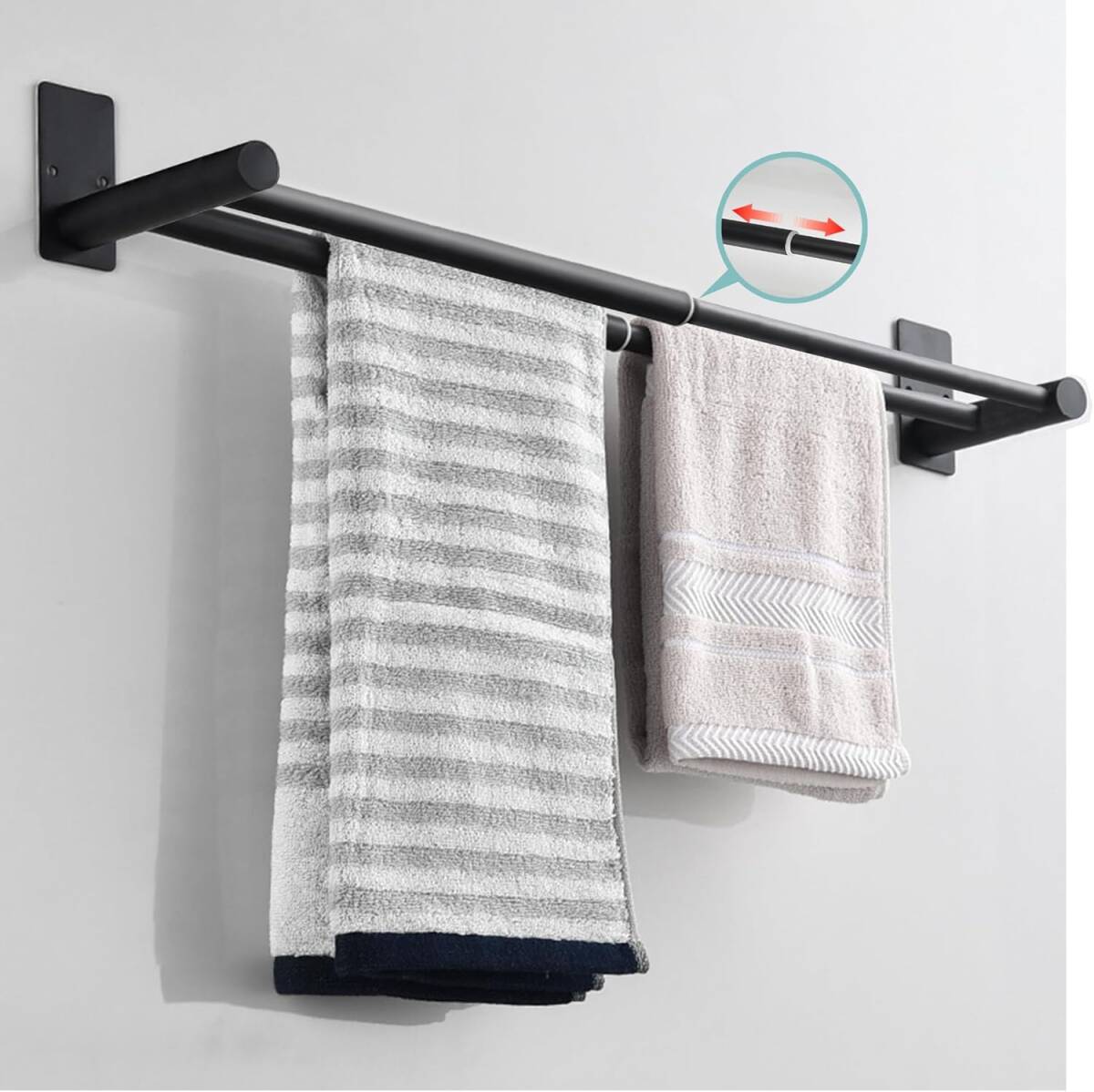 - 伸縮 タオル掛け 30-57㎝ 調整可能 ハンガー バー 洗面所 壁 貼れる 穴あけ不要 H型 ブラック ダブルロッド ブラック