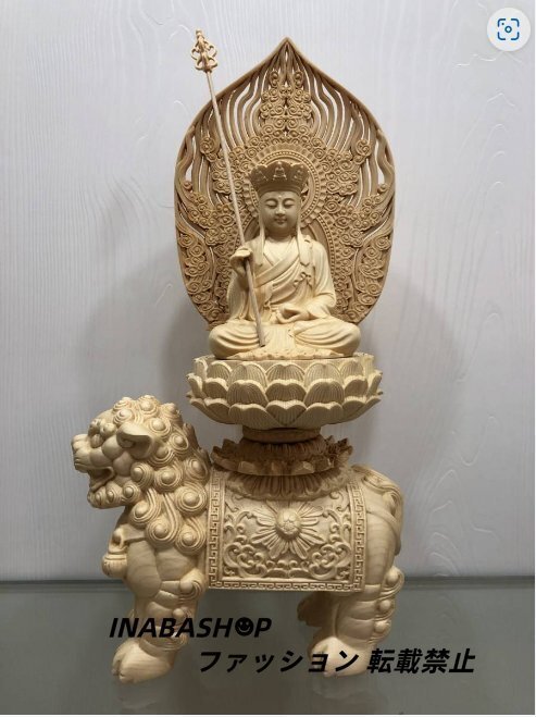 - 人気新作!木彫仏像 大願地蔵王菩薩 御獅子騎獣 檜木 彫刻工芸品 仏師で仕上げ品 高さ36cm
