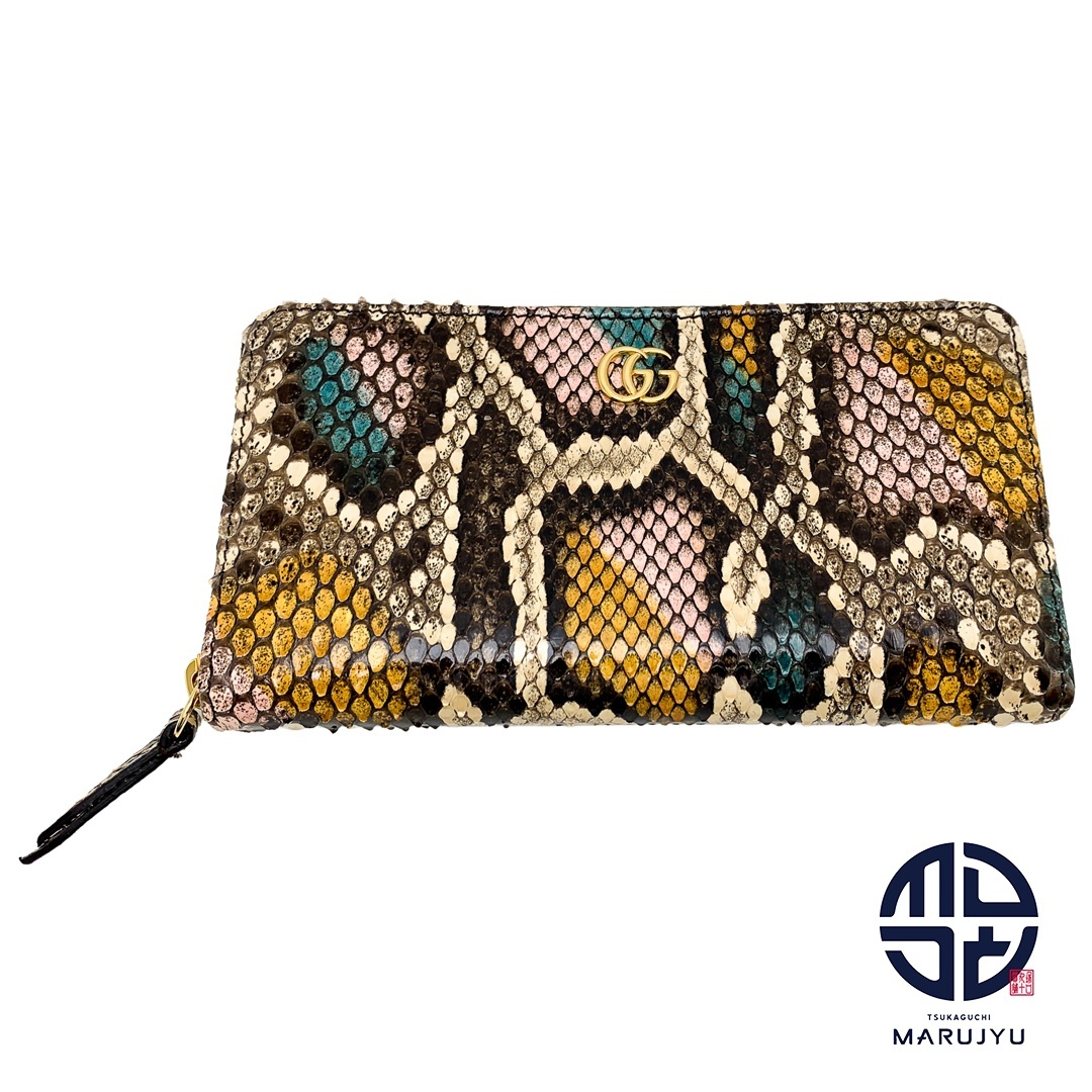 - GUCCI グッチ ダブルG ジップアラウンドウォレット パイソン 蛇革 マルチカラー 456117 長財布 サイフ ブランド