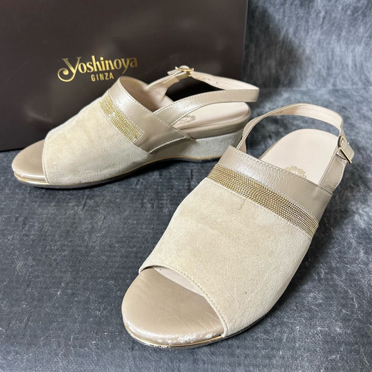 - GINZA YOSHINOYA 銀座ヨシノヤ スエードサンダル ストラップサンダル ウェッジ 23.5cm ベージュ *111