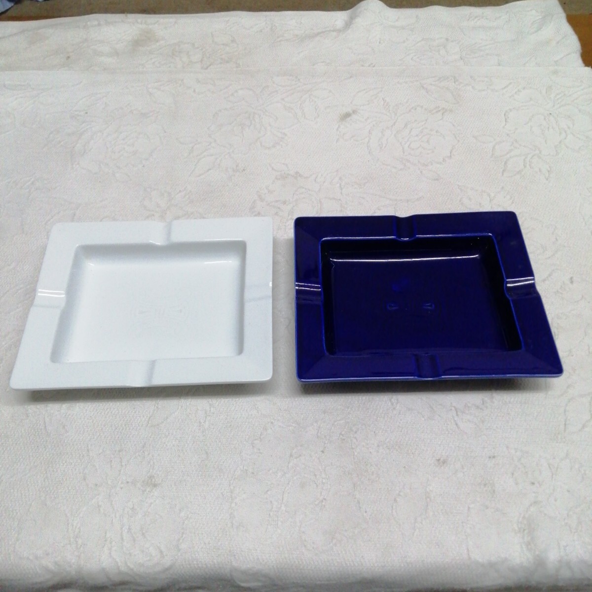 - 計2個 灰皿 色違い 白 紫 セリーヌ(CELINE)トリオンフ(Triomphe) 柄 マーク 有田焼