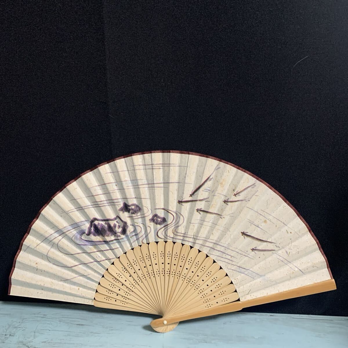 > 扇子 せんす 竹 うなぎ 鰻 ウナギ 岩 川 清流 アンティーク コレクション 和装小物 紙扇子 竹フレーム 昭和レトロ 和風 (A-2893)