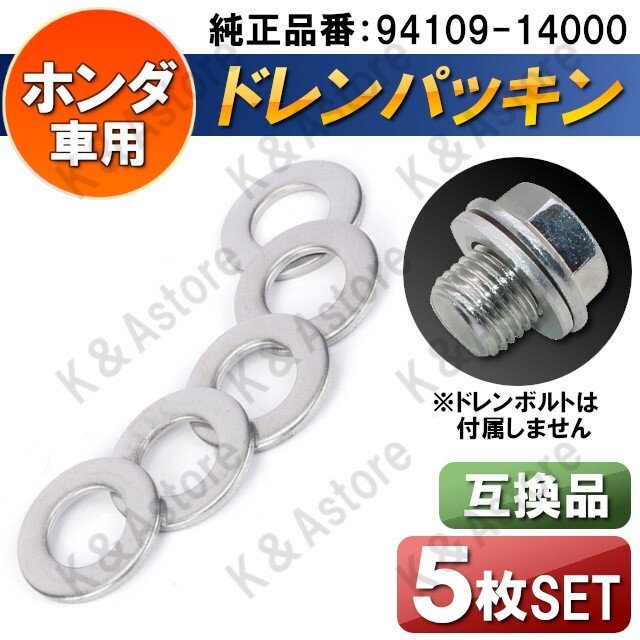 > 【匿名配送】ドレンパッキン ドレンワッシャー オイルドレンガスケット ホンダ用 純正品番94109-14000 互換品 M14 内径14mm 外径21.8mm 5個