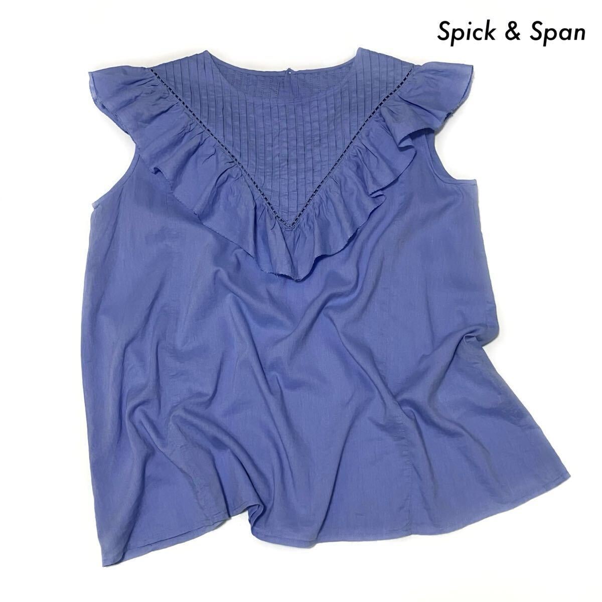 - 【送料無料】Spick & Span スピック&スパン★ノースリーブブラウス フリル ピンタック ブルー 青