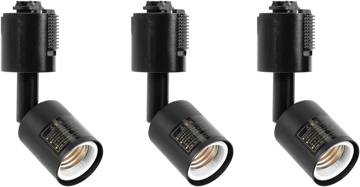 - Pispoer ダクトレール用ライト E26口金 電球なし ライティングレール 照明、配線ダクトレール用器具 照射角度調節可能 黒 3個セット