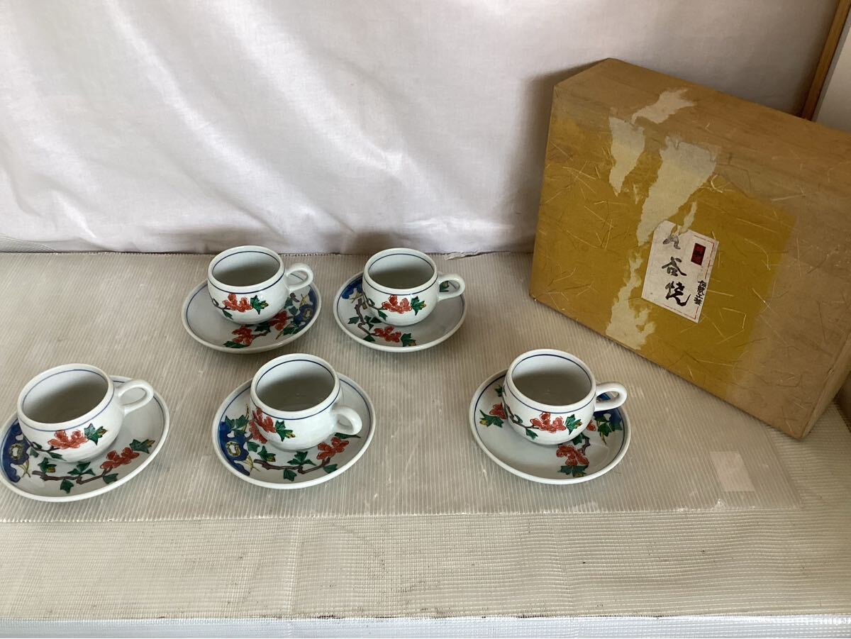 > 【K0605】九谷焼 カップ& ソーサー 九谷美山 ティーセット コーヒーセット 陶器 食器 箱入り未使用