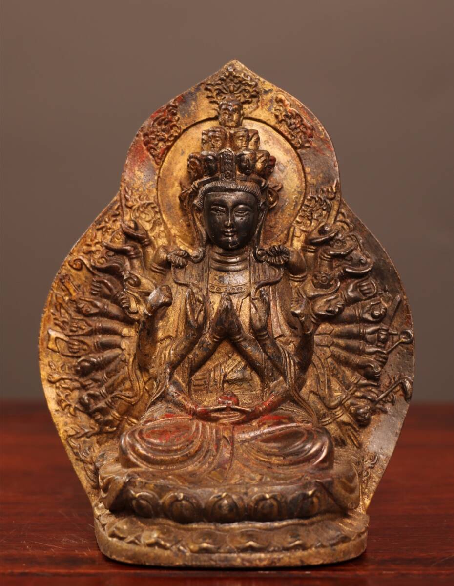 - 時代旧蔵 清時代 銅製 純銅 蒔絵造像 千手観音菩薩像 仏教古美術 仏像 細密細工 廃寺旧蔵 廃寺買出品 821